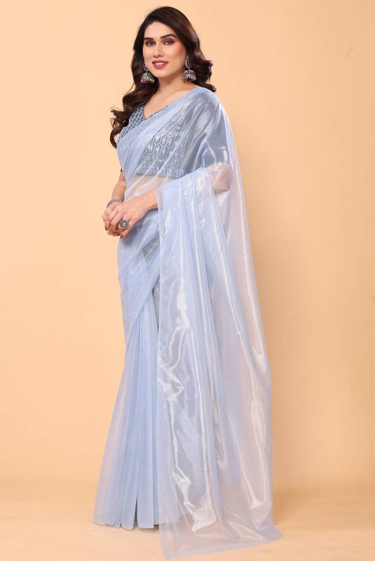 | Product Name | Party Wear Plain Twill Net Saree With Embroidery Silk Unstitched Blouse Piece | |