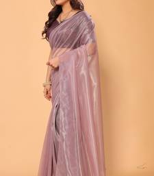 Pretty designer plain jimmy choo twill net saree with unstitched plain blouse piece