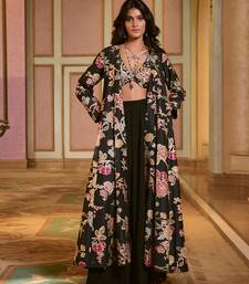 Product Name | Black Printed Silk Jacket Set | |