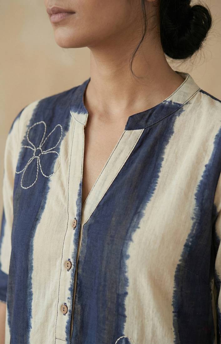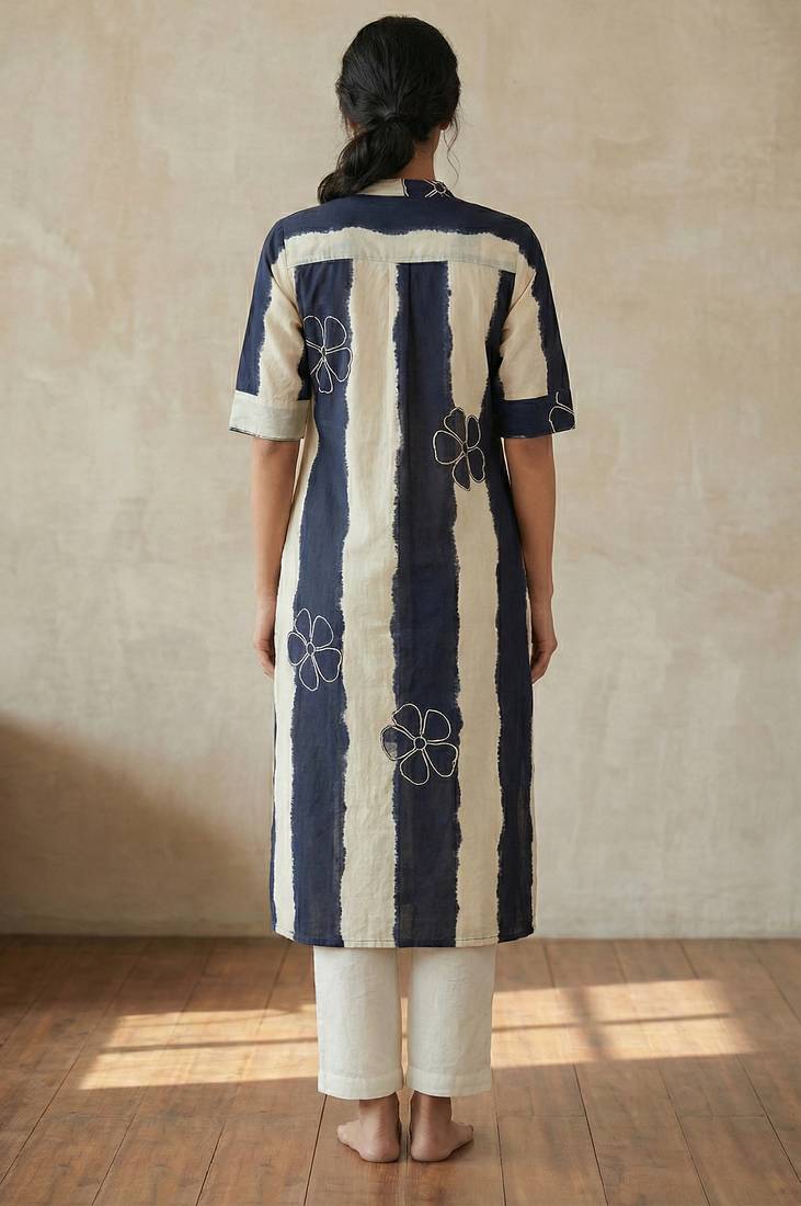 | Product Description | Navy Striped Embroidered Cotton Straight Kurti Is Designed For Women Who Love Comfort With Modern Elegance. The Breathable Cotton Blend Fabric Ensures An Easy All Day Feel. Featuring Hand Paint Style Vertical Stripes, Delicate Floral Thread Embroidery, A Mandarin Collar And A Full Button Down Front, This Kurti Is Perfect For Office Wear, Everyday Wear, And Casual Outings. Its Straight Fit Silhouette Creates A Sleek, Flattering Look Suitable For All Seasons. Seo Keywords Navy Kurti, Striped Kurti For Women, Embroidered Cotton Kurti, Button Down Kurti, Straight Kurti, Breathable Cotton Kurta, Office Wear Kurti, Trendy Kurti For Women, Daily Wear Kurti, Summer Cotton Kurti |