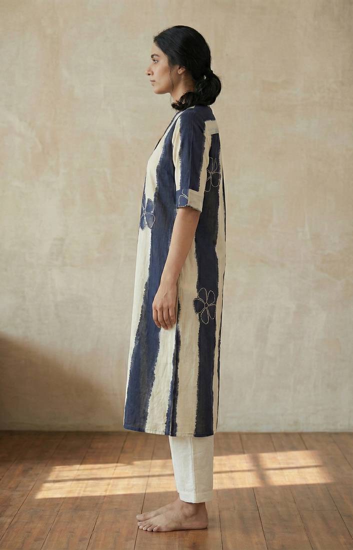 | Product Name | Navy Blue Striped Floral Embroidered Cotton Straight Kurti | |