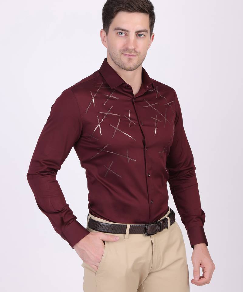 | Product Name | Pier Seven Embellished Cotton Blend Men's Slim Fit Full Sleeve Shirt Maroon (Pwy073) | |