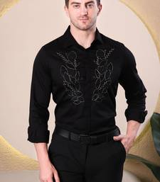 Product Name Pier Seven Hand Embroidered Cotton Blend Men's Slim Fit Full Sleeve Shirt Black (Pwy233)