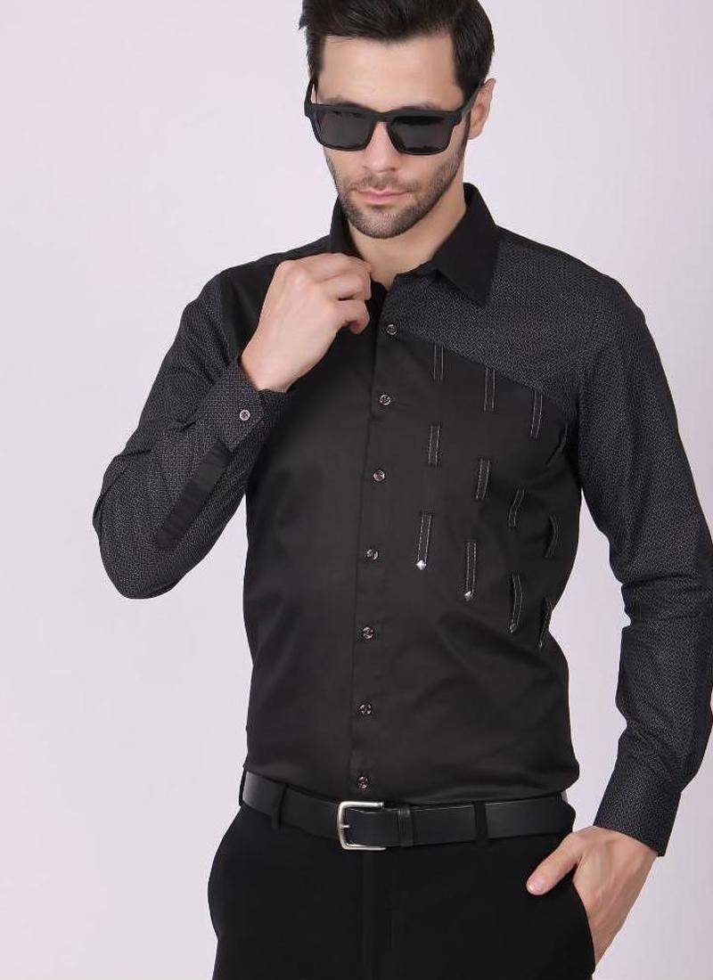 Product Name Pier Seven Men's Cotton Print/ Stud Detailed Slim Fit Shirt Black