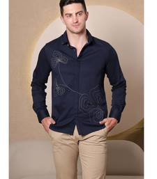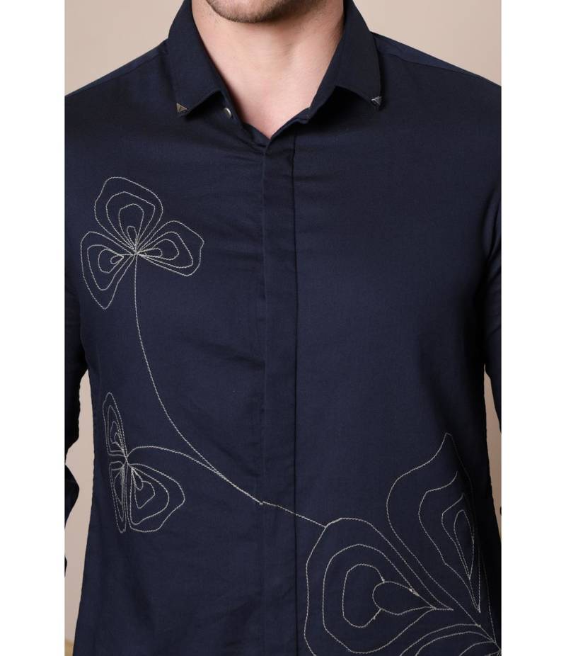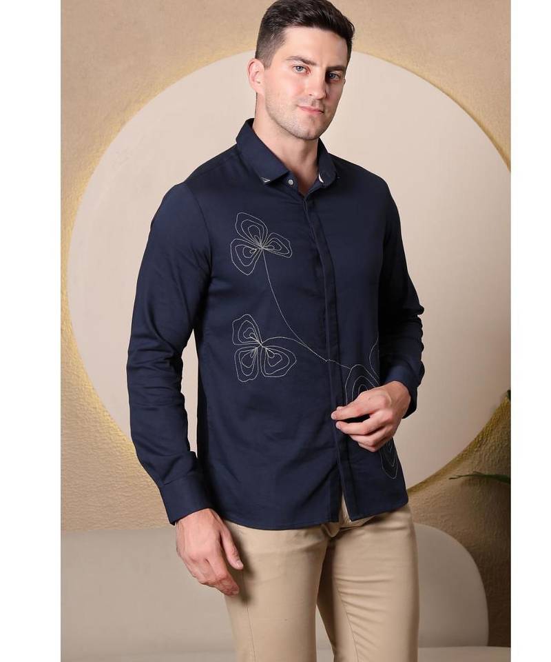 Product Name Pier Seven Men's Polycotton Embroidered Regular Fit Shirt Navy Blue (Pwy080)
