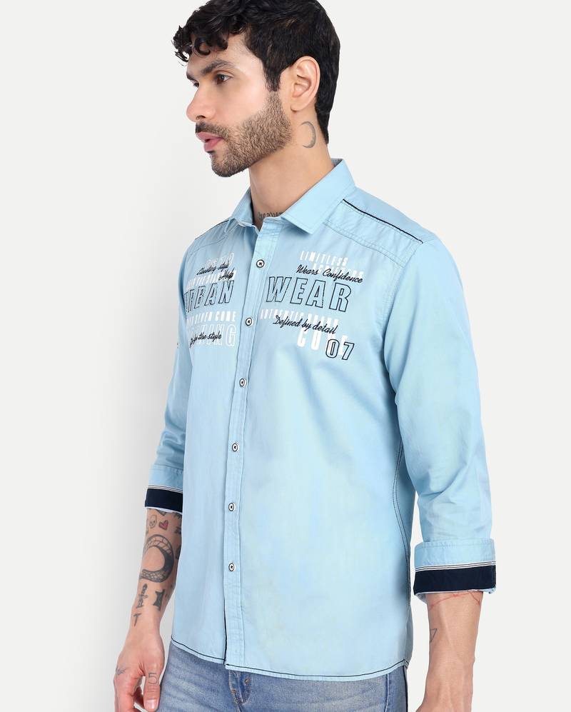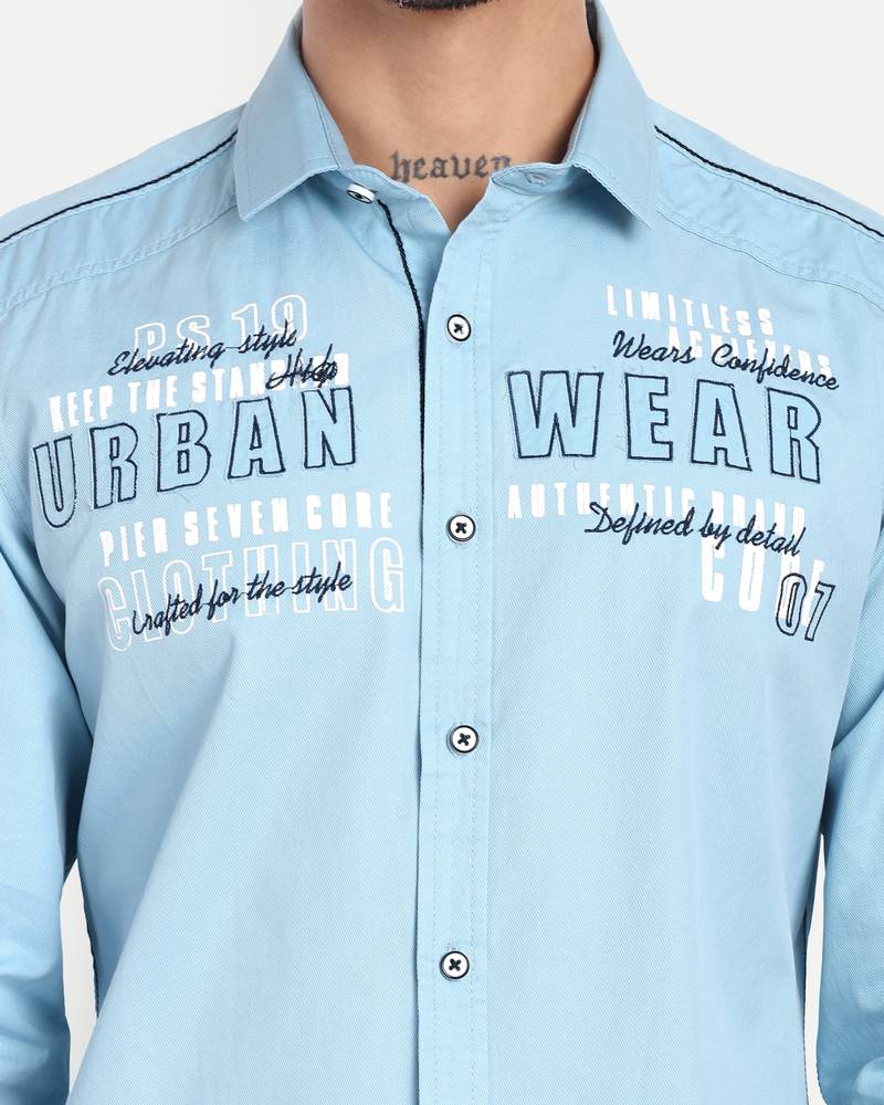 | Product Description | Upgrade Your Casual Wardrobe With This Stylish Light Blue Regualr Fit Placment Print With Embroidery Shirt Designed For Modern Urban Men. Featuring Bold Typography Prints On The Chest And Sleeve, This Shirt Delivers A Confident Street Style Appeal. Crafted With A Smooth, Breathable Fabric, It Offers All Day Comfort While Maintaining A Sharp, Structured Look. The Full Sleeves With Contrast Cuffs Add A Premium Touch, Making It Perfect For Casual Outings, Weekend Wear, Or Smart Casual Occasions. Pair It With Jeans Or Chinos For An Effortlessly Trendy Outfit. |