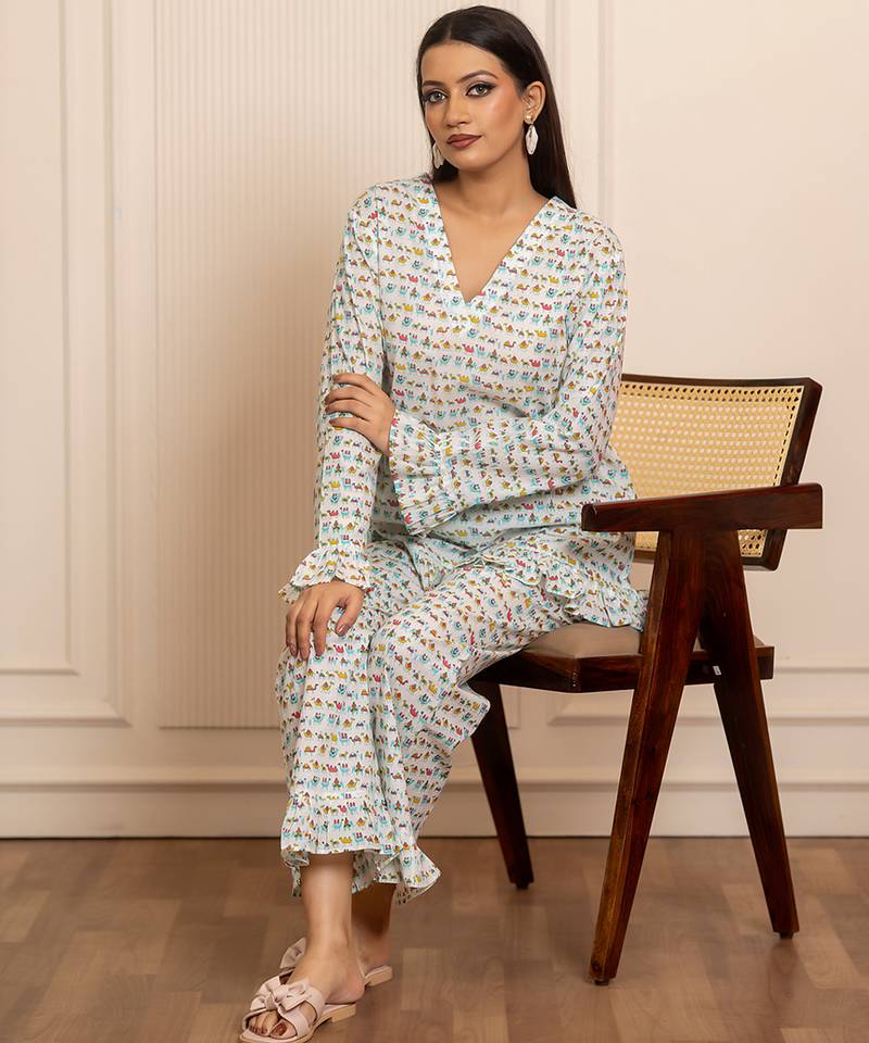 | Product Description | This White Printed Cotton Co Ord Set Reflects Subtle Elegance With Its Soft Base And Graceful Prints. Made From Breathable Cotton Fabric, It Ensures Comfort Throughout The Day. Perfect For Casual Gatherings, Festive Lunches, And Daytime Events With A Refined Traditional Touch.