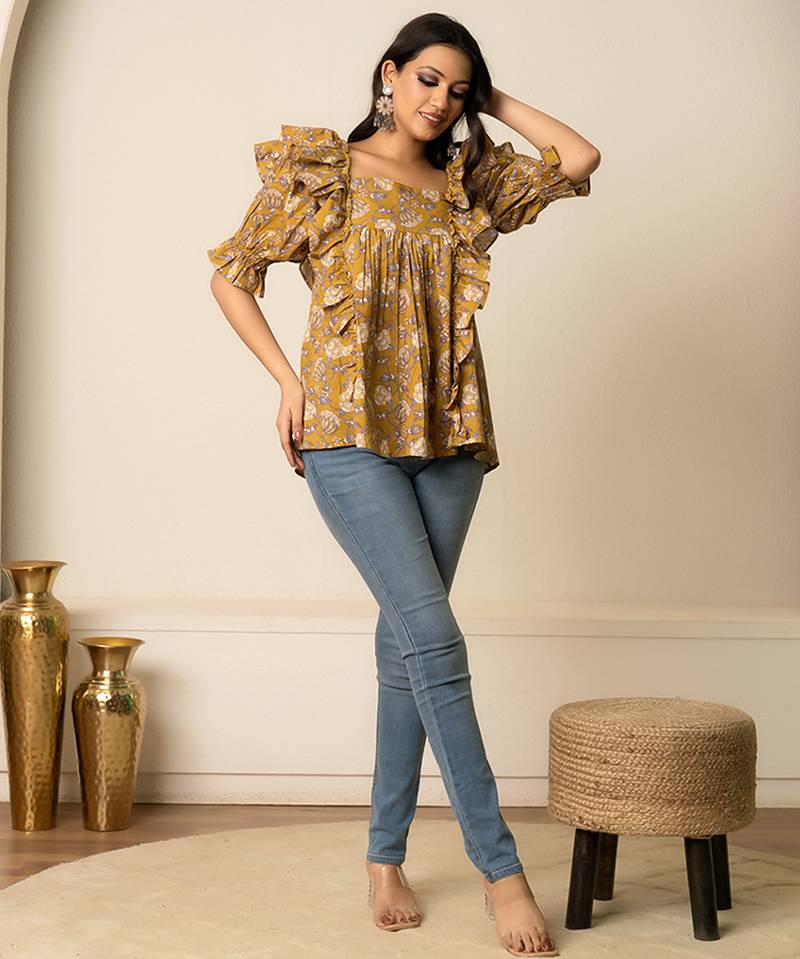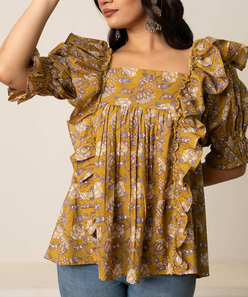 | Product Name | Mustard Yellow Printed Cotton Top | |