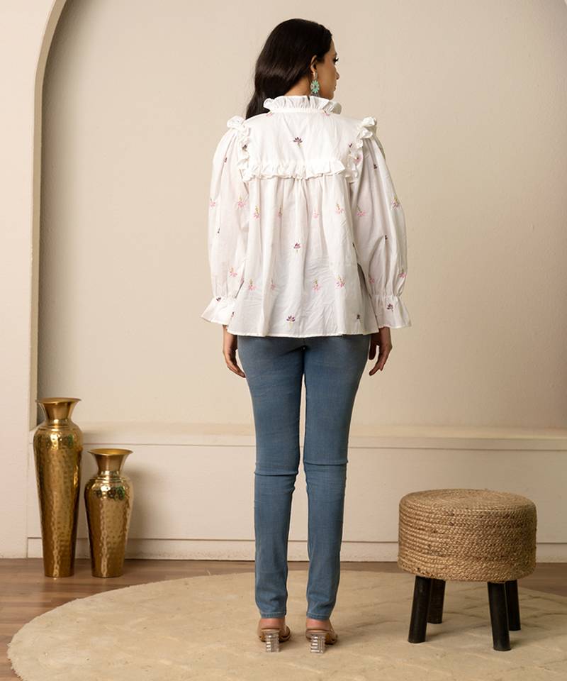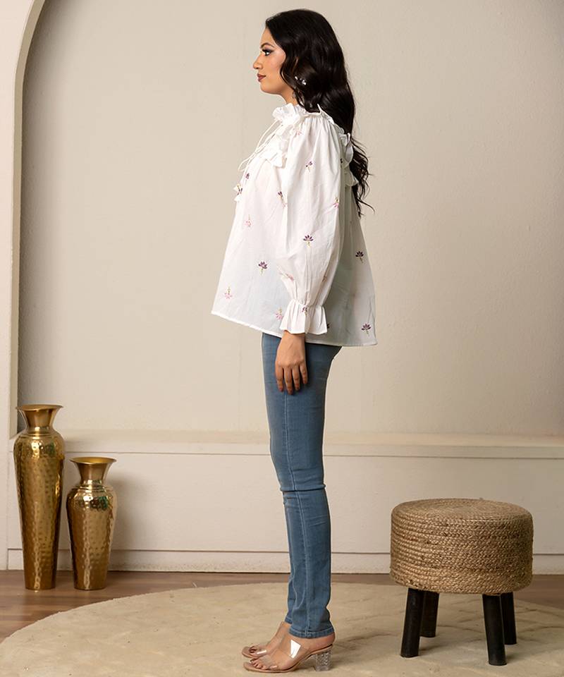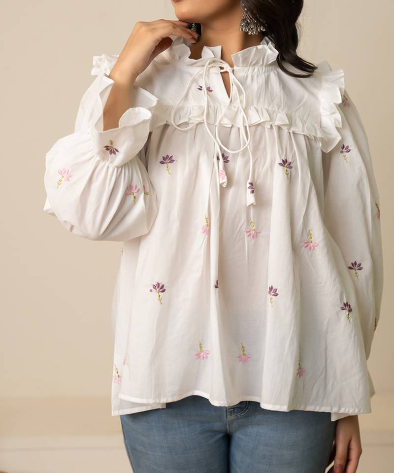 | Product Description | The White Embroidered Cotton Top Showcases Delicate Embroidery On Soft Cotton Fabric For A Refined Look. Designed For Comfort And Elegance, It Is Perfect For Festive Mornings, Casual Celebrations, And Everyday Ethnic Wear.