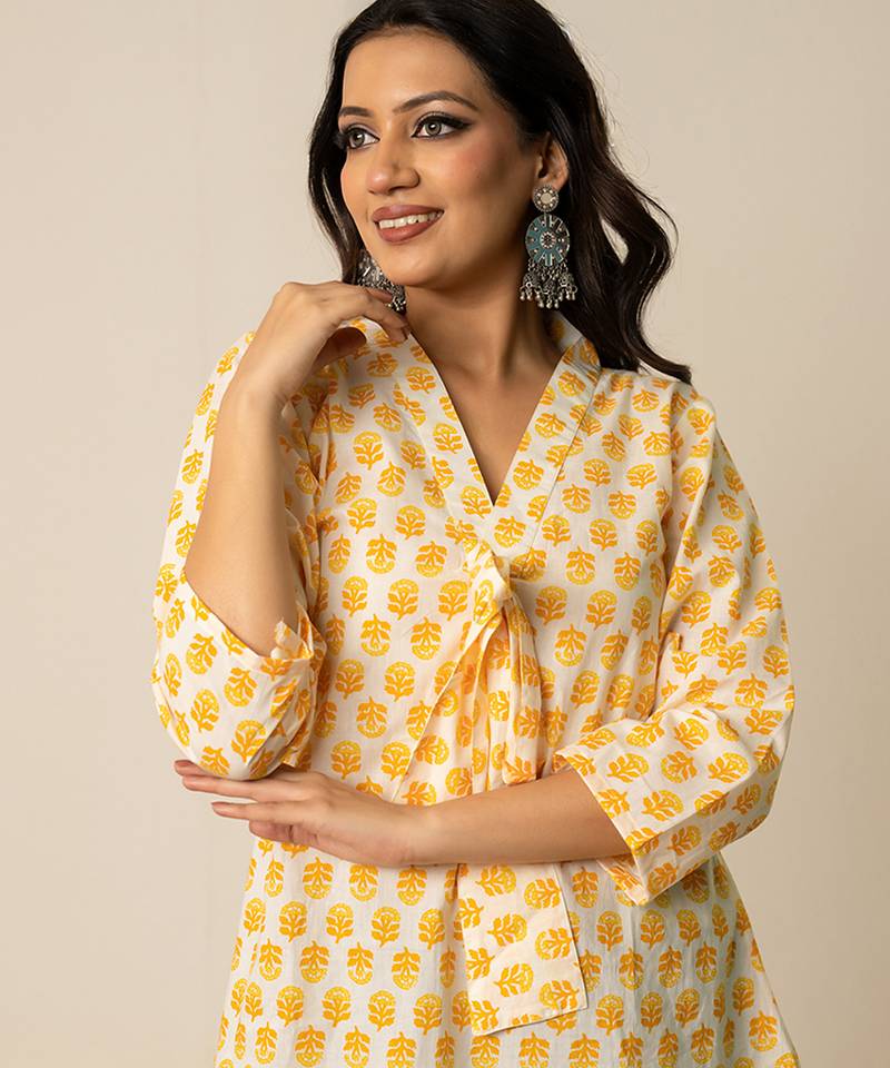 | Product Description | This Yellow Printed Cotton Top Adds Brightness And Cheer To Your Wardrobe. Crafted From Breathable Cotton Fabric, It Features Lively Prints And A Comfortable Silhouette. Ideal For Casual Outings, Festive Lunches, And Daytime Wear With Vibrant Charm.