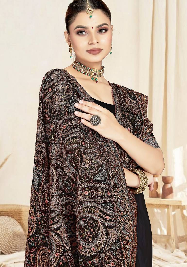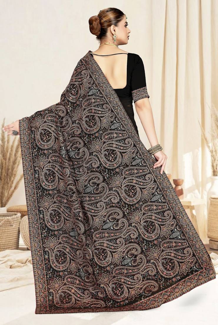 Product Name | Black Color Resham Multi Kashmiri Embroidery Work Saree With Blouse | |