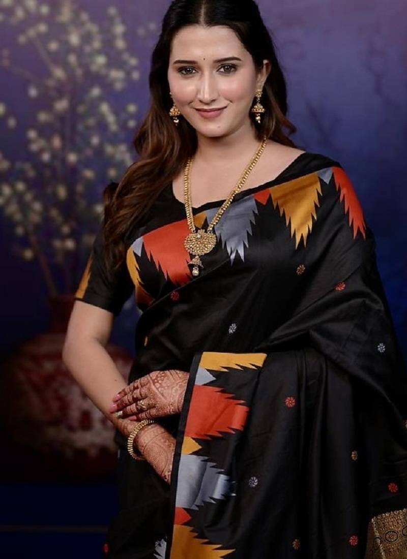 | Product Name | Black Color Temple Woven Work Soft Art Silk Saree | |