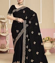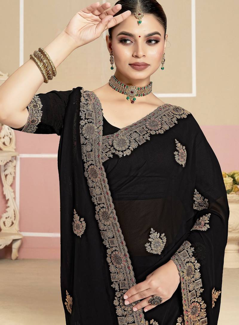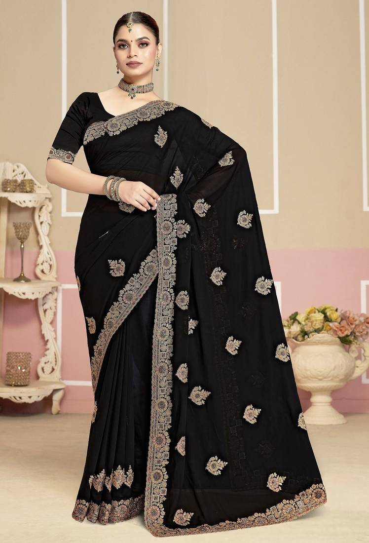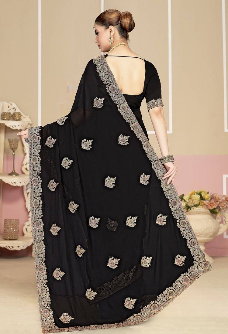 Black color zirkon work & codding embroidered georgette saree with blouse