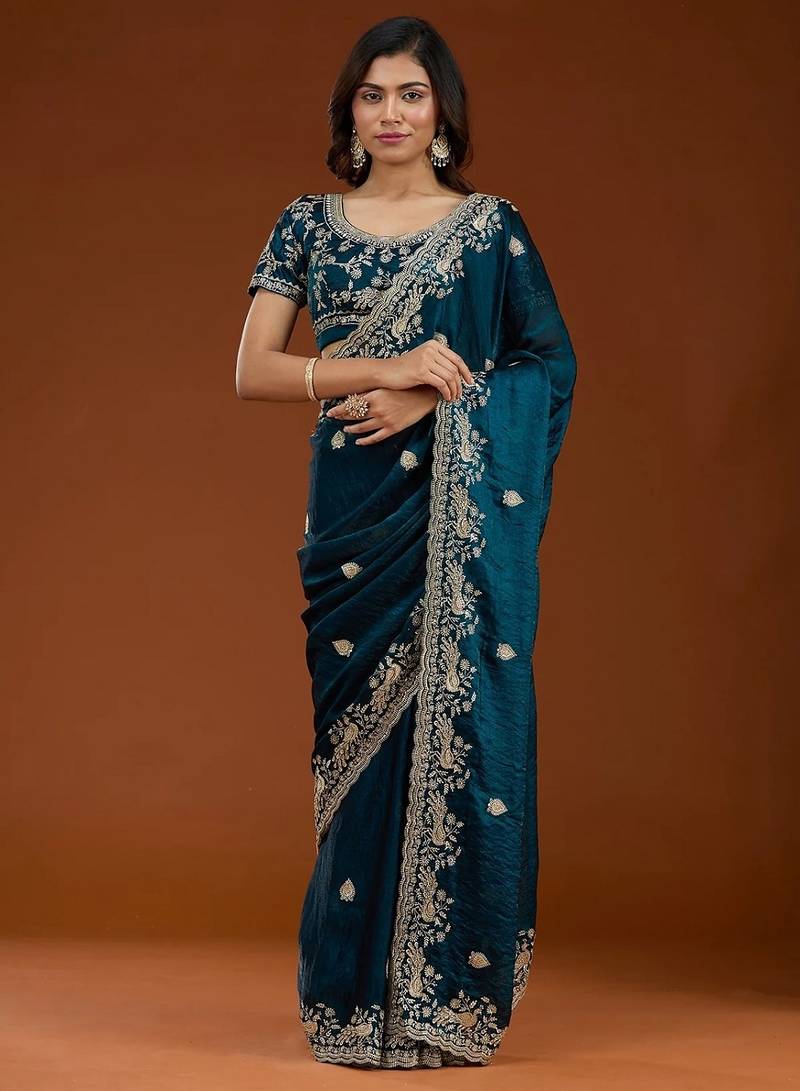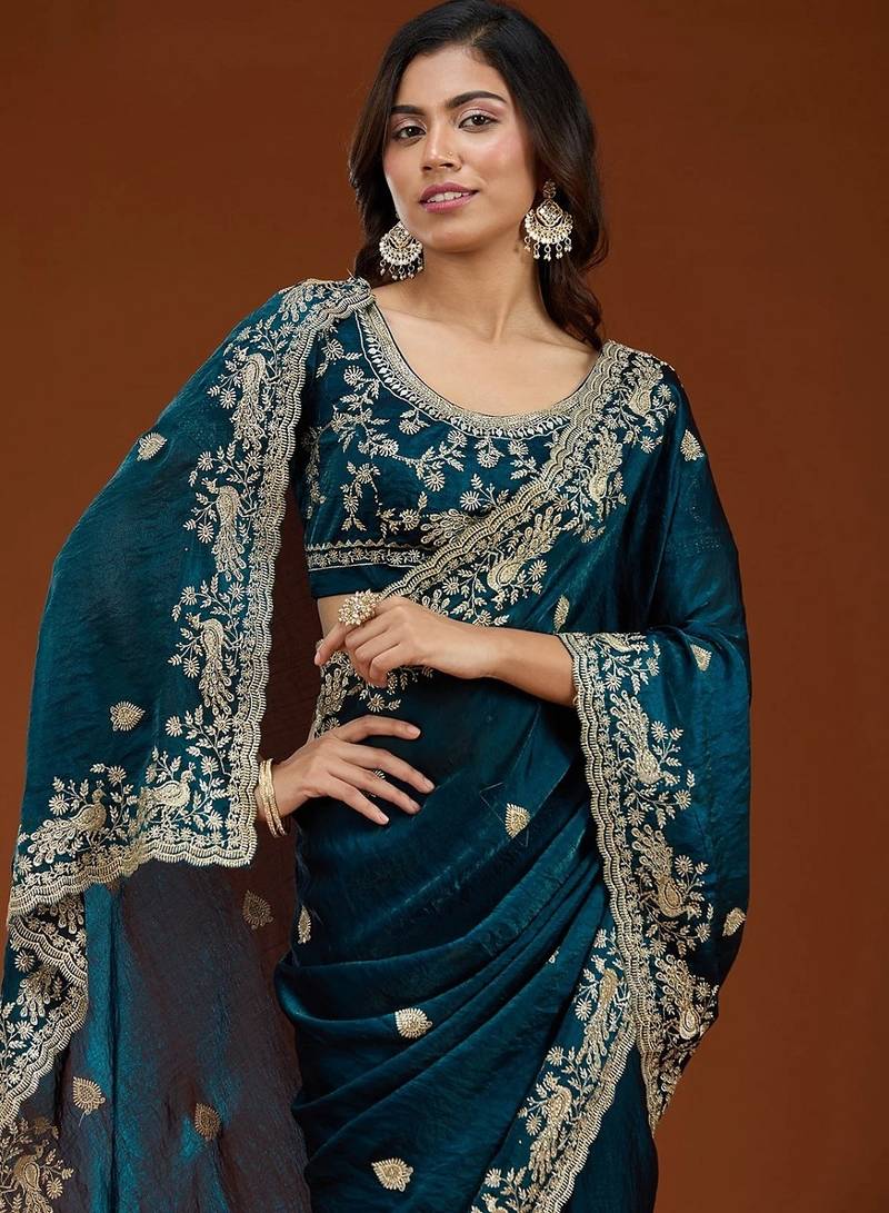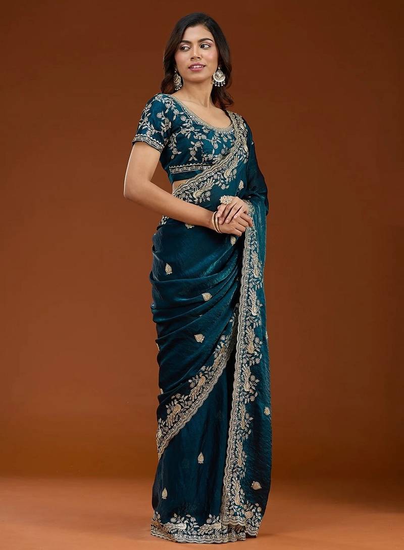 | Product Name | Blue Color Fendi Satin Embroidered Work Saree With Blouse | |