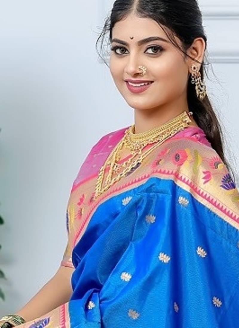 | Product Name | Blue Color Weaving Paithani Gold Copper Zari Weaving Meenakari Border Saree | |