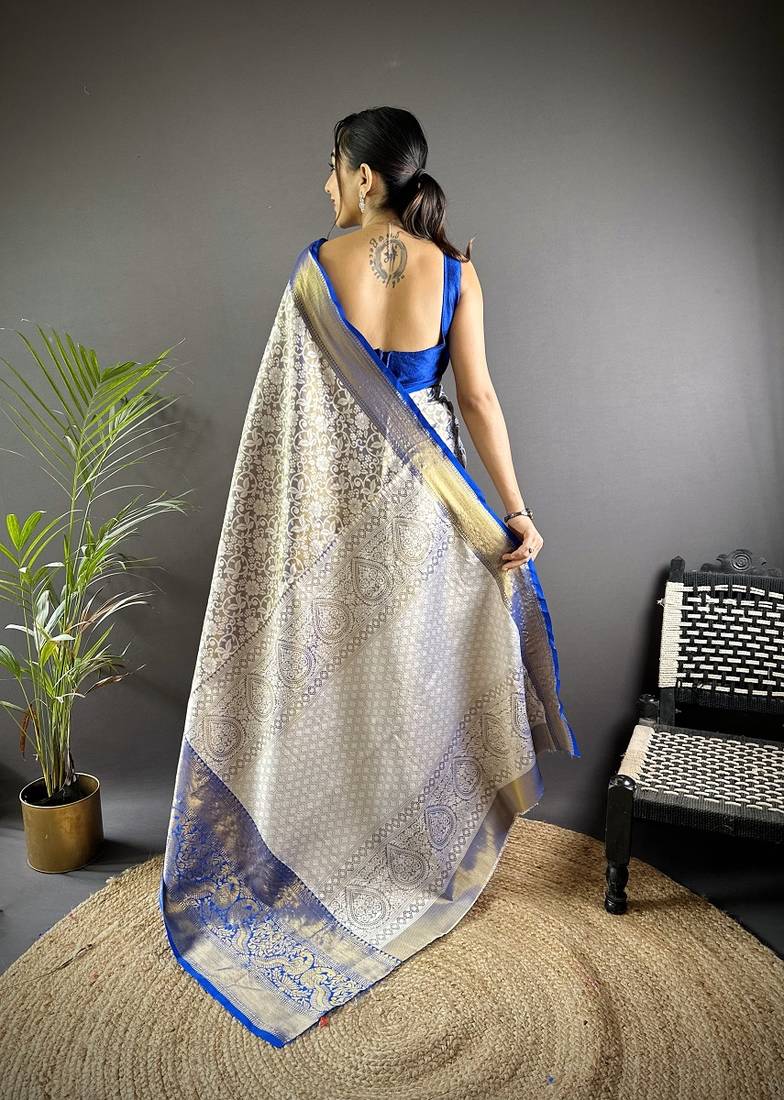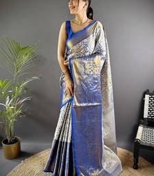 Blue color zari weaving work kanjivaram tissue art silk saree
