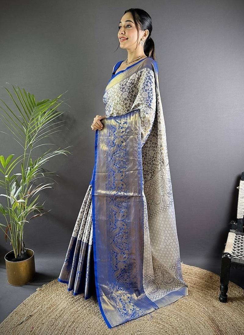 | Product Name | Blue Color Zari Weaving Work Kanjivaram Tissue Art Silk Saree | |