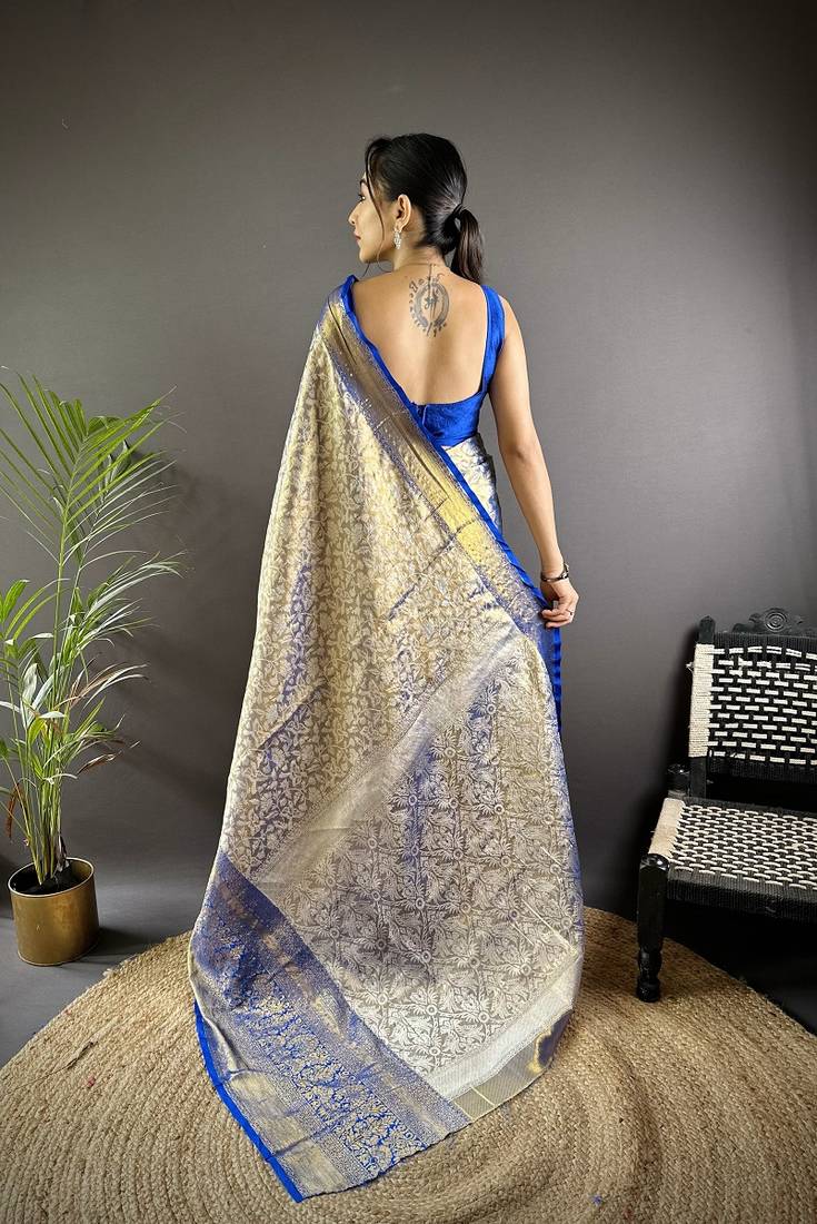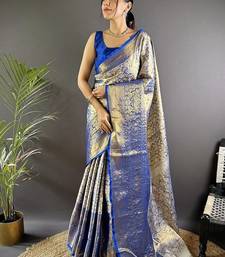 Blue color zari weaving work kanjivaram tissue art silk saree