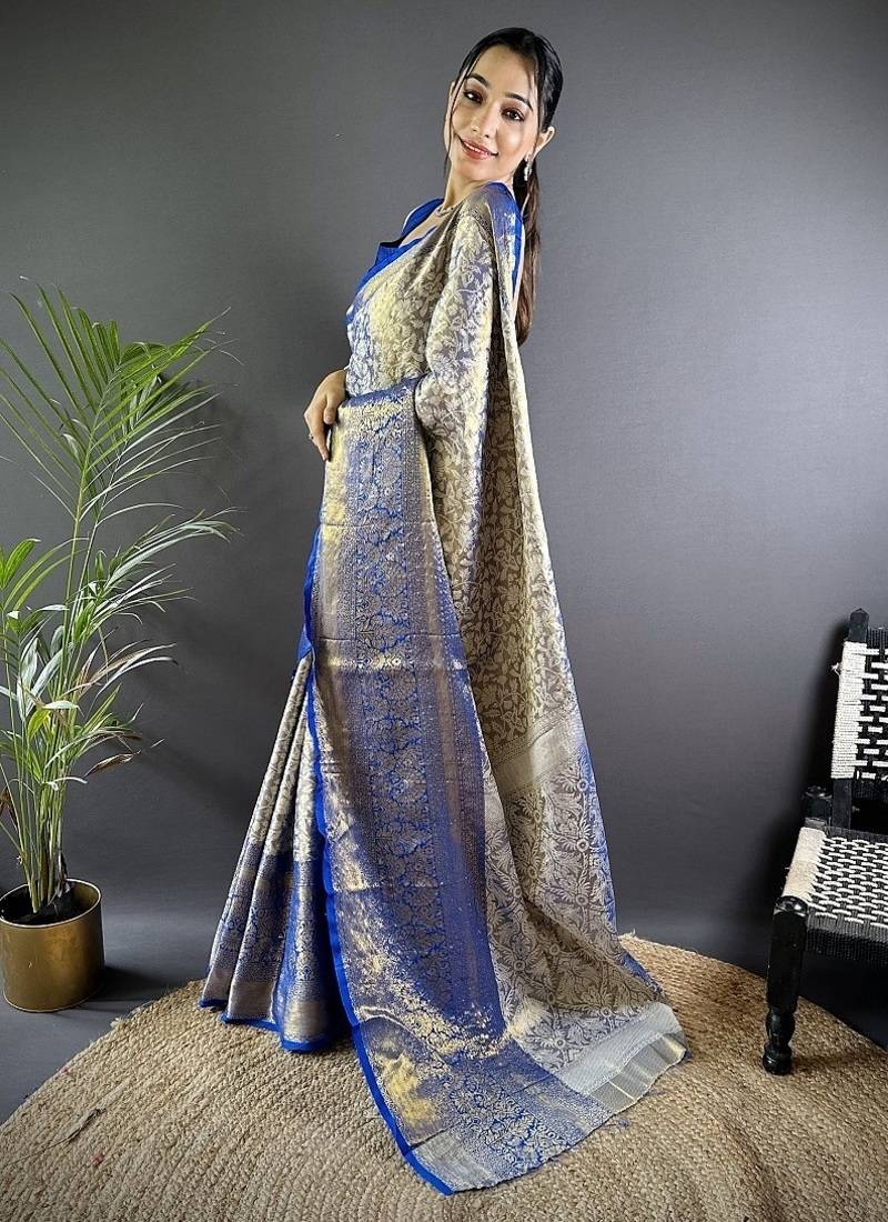 | Product Name | Blue Color Zari Weaving Work Kanjivaram Tissue Art Silk Saree | |