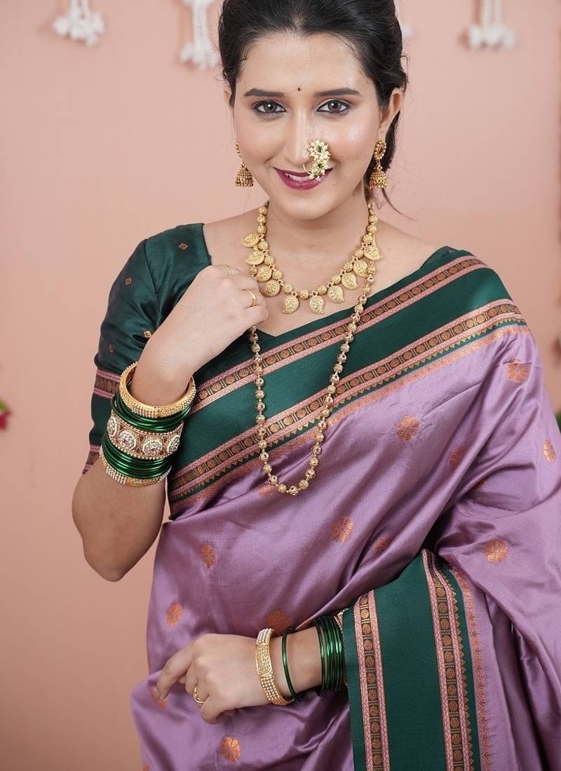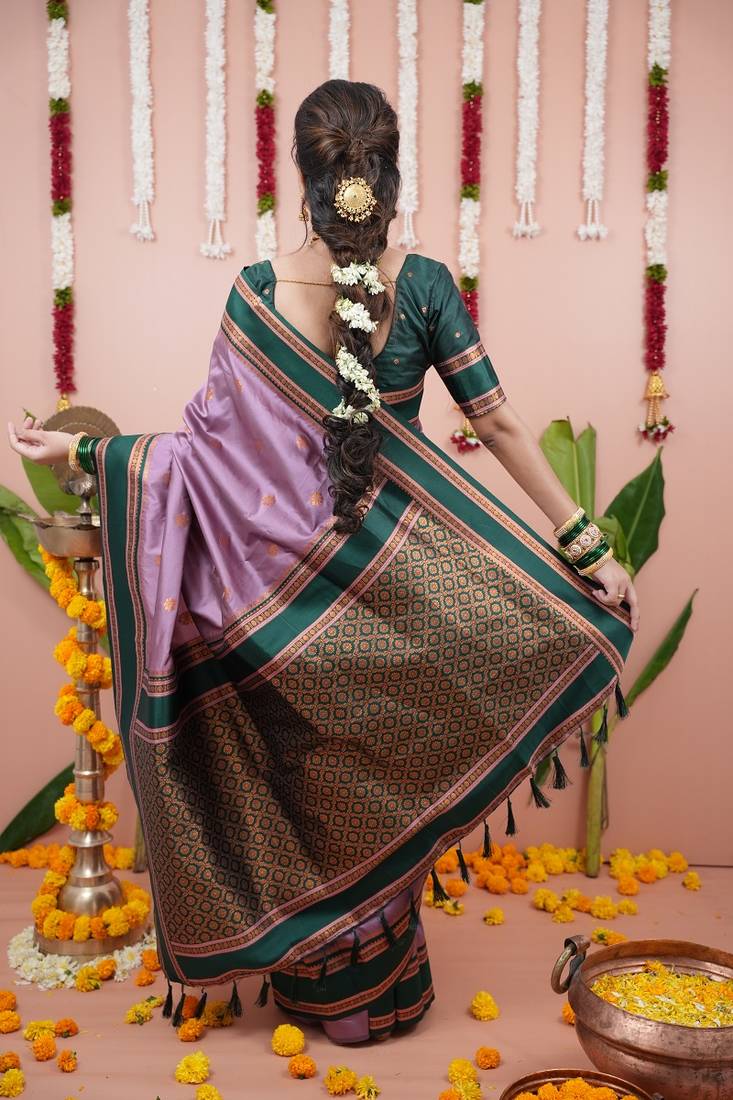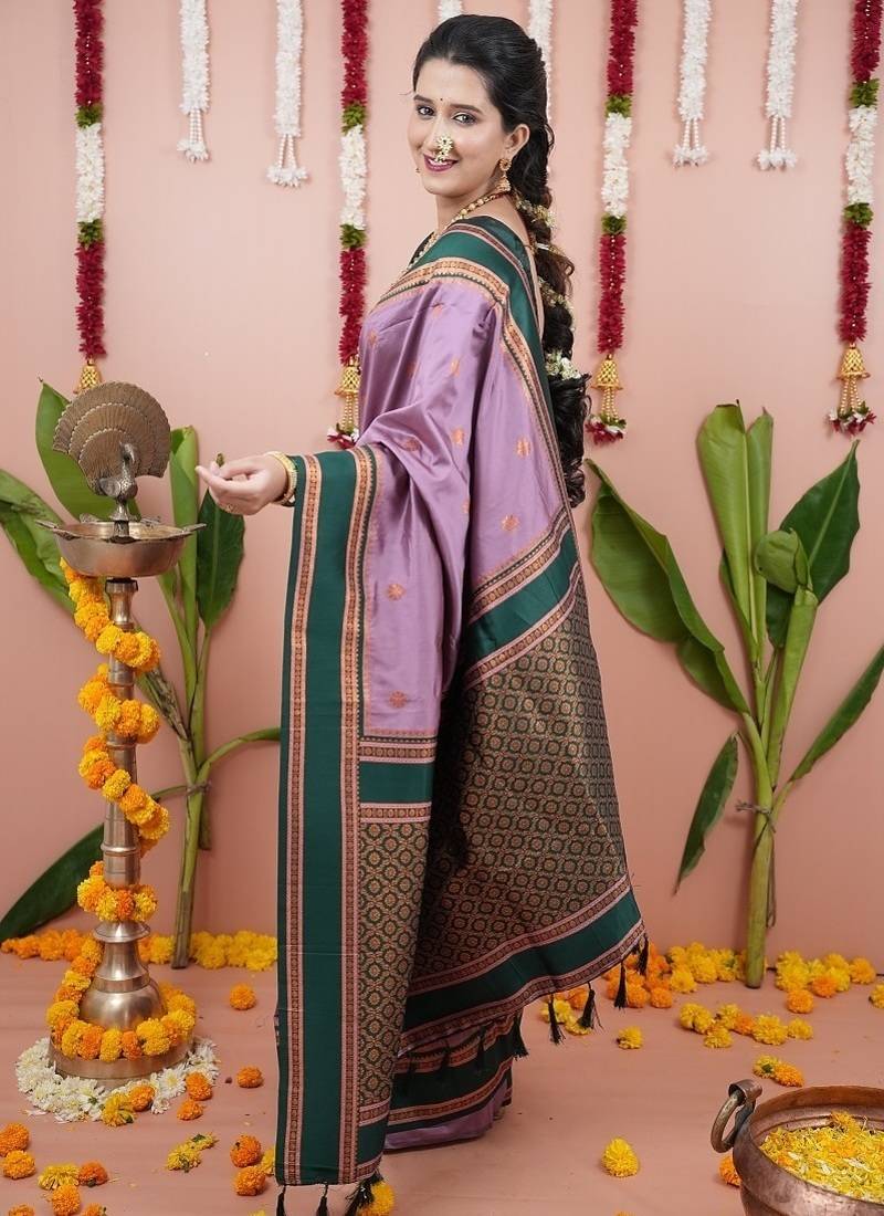 | Product Name | Dark Levender Color Narayani Woven Border Zari Work Soft Silk Blend Saree | |