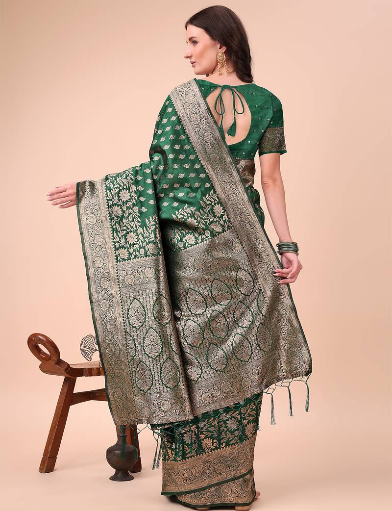 Product Name Green Color Woven Work Lichi Art Silk Blend Saree