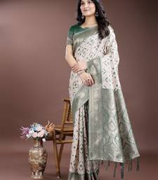 Green color woven work linen cotton saree