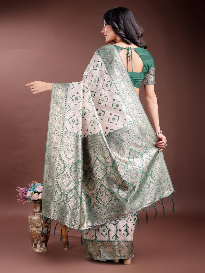 | Product Name | Green Color Woven Work Linen Cotton Saree | |