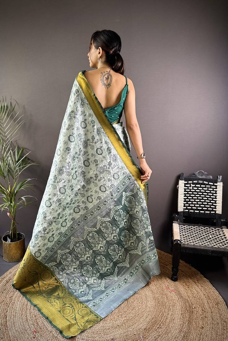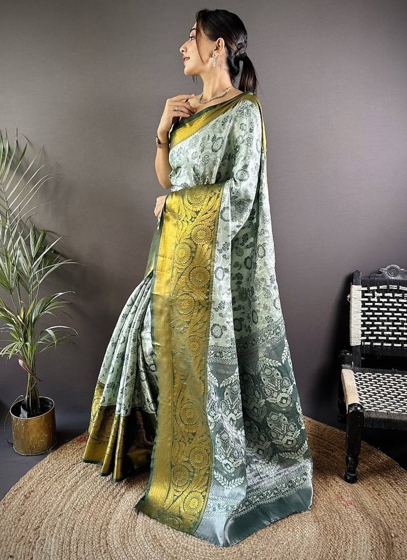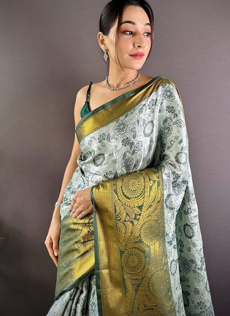 | Product Name | Green Color Woven Zari Work Kanjivaram Tissue Art Silk Saree | |