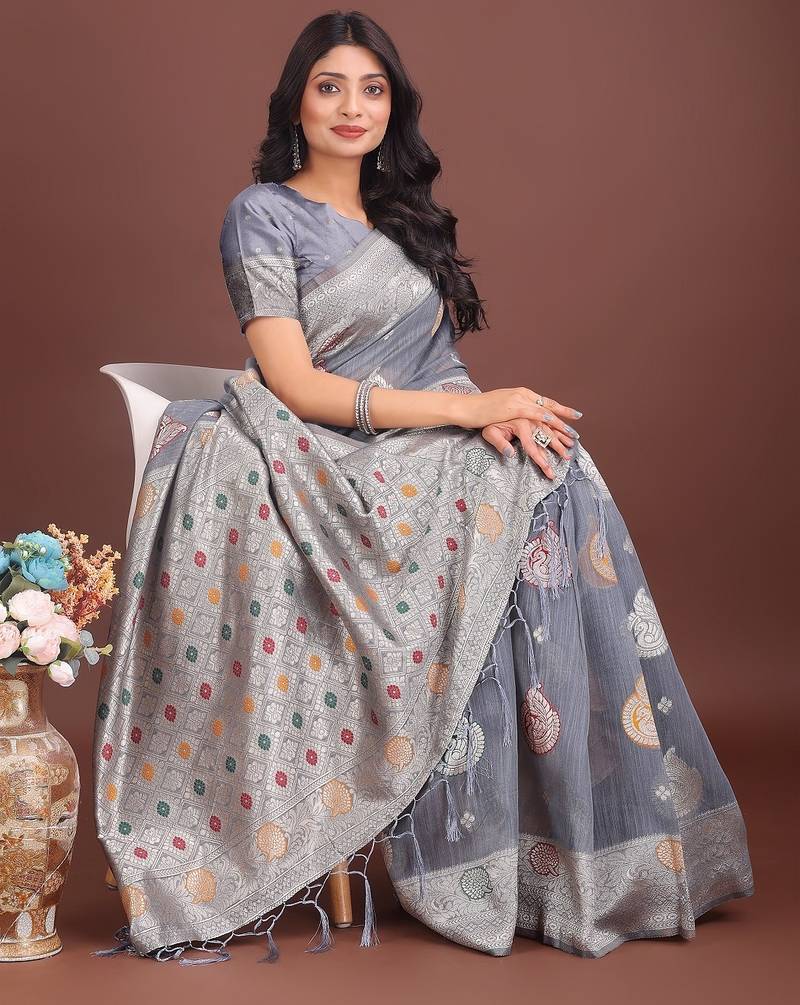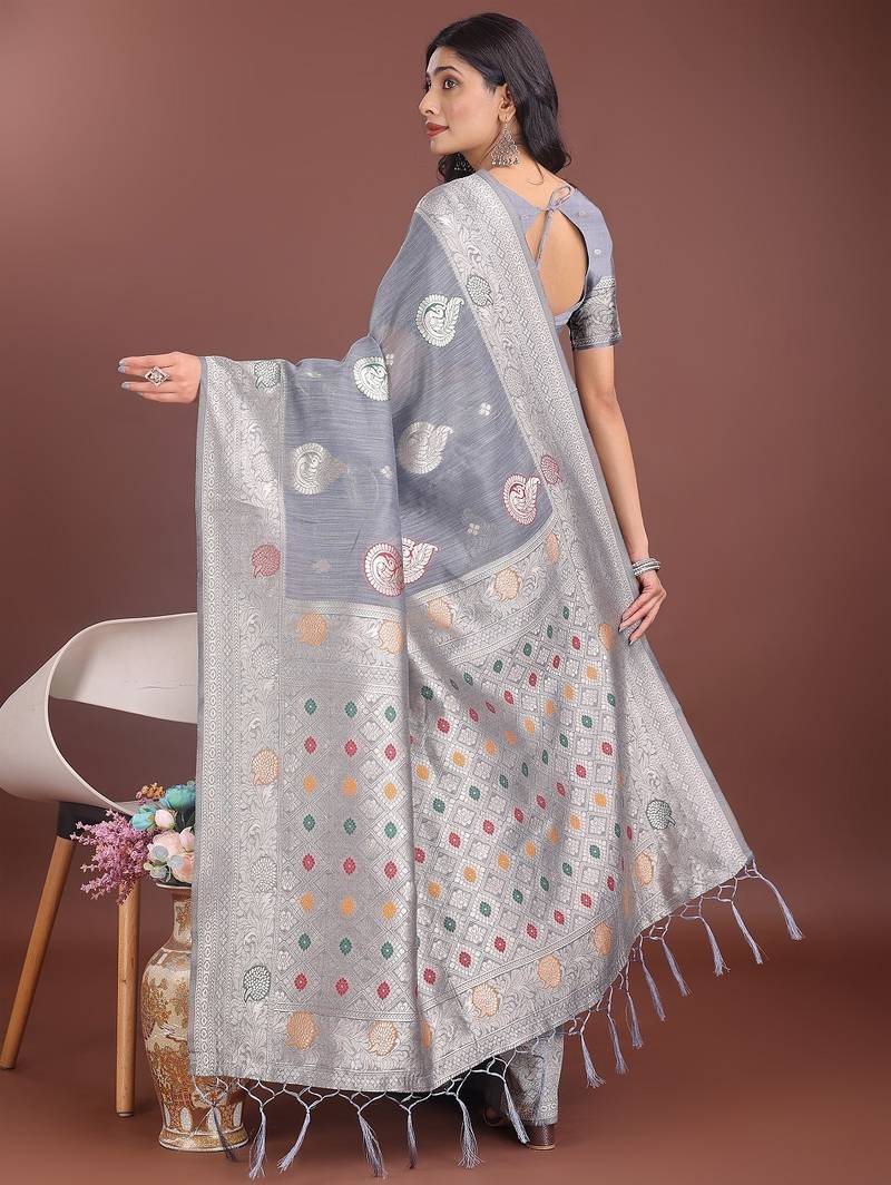 | Product Name | Grey Color Linen Cotton Zari Weaving Saree With Blouse | |