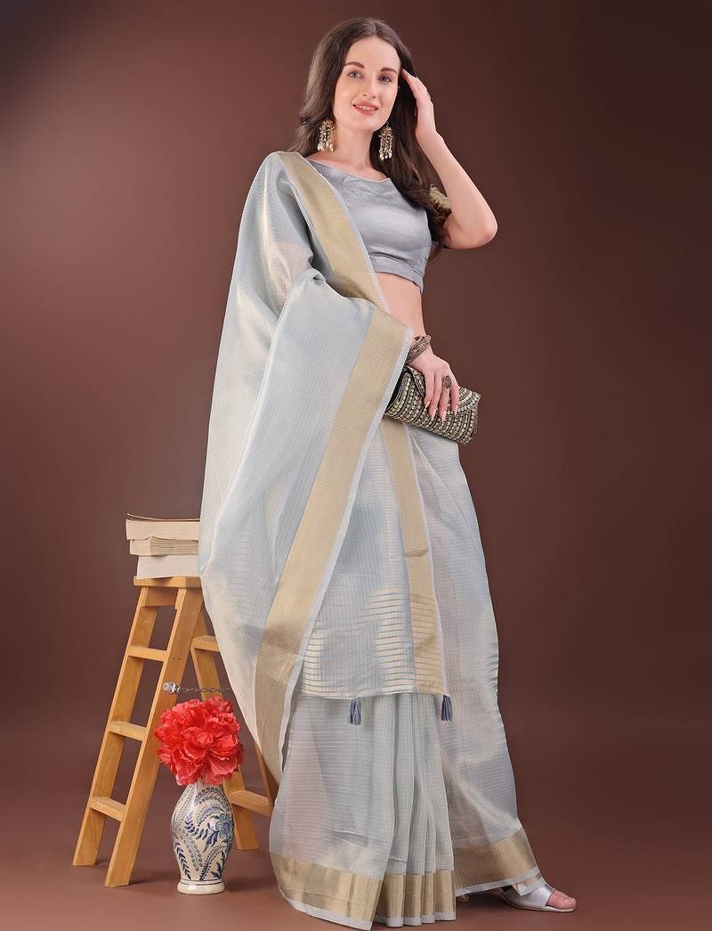 | Product Name | Grey Color Orgenza Zari Border Saree With Blouse | |
