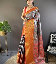 | Product Name | Grey & Red Color Zari Weaving Work Kanjivaram Tissue Silk Saree | |