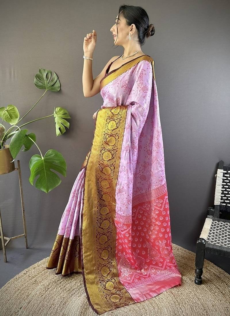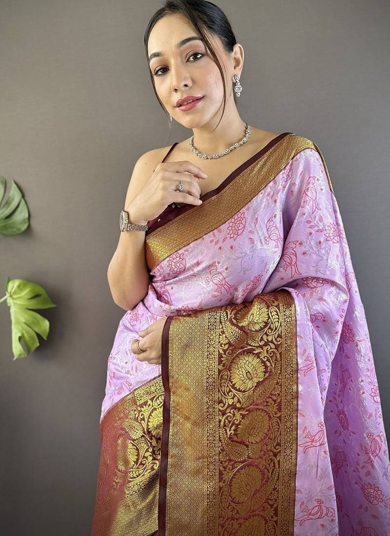 Levender & blue color woven zari work kanjivaram tissue art silk saree