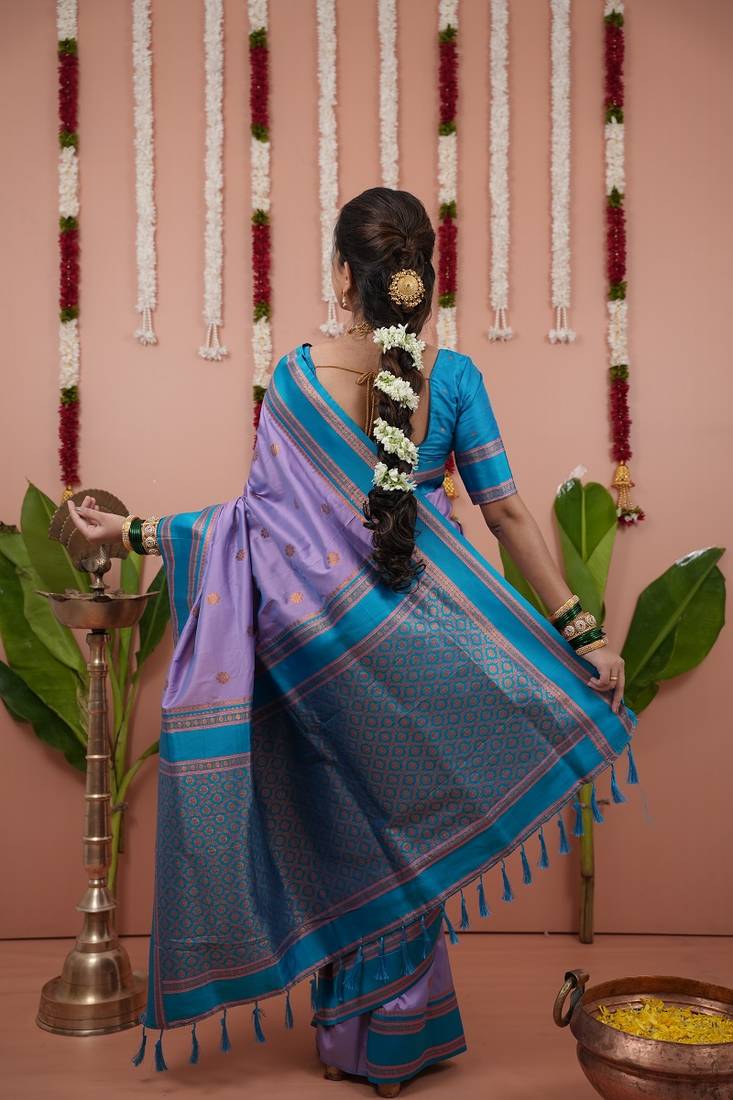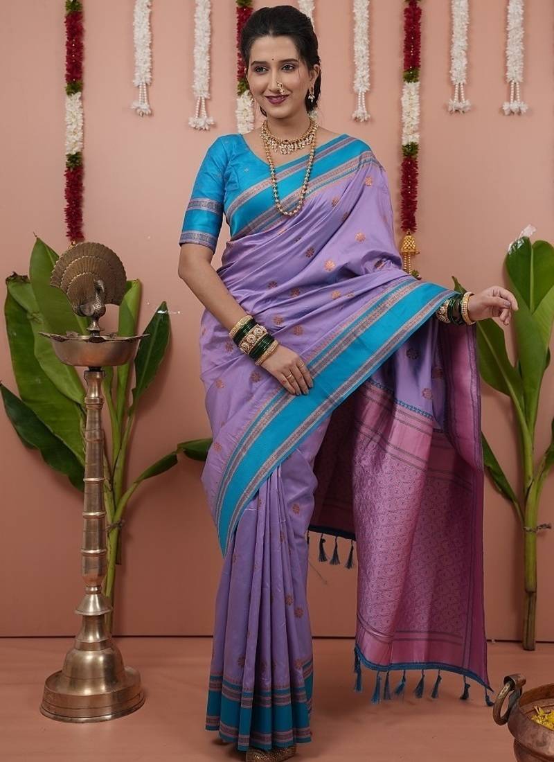 | Product Name | Levender Color Narayani Woven Border Zari Work Soft Silk Blend Saree | |