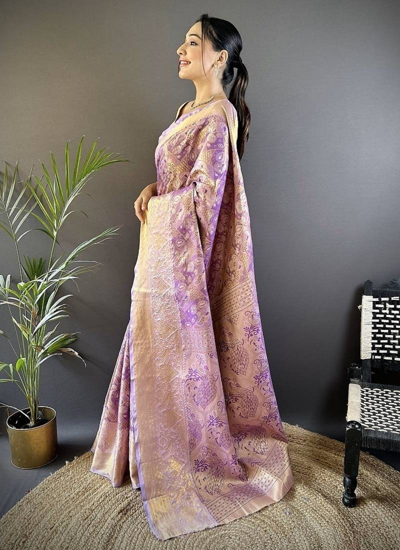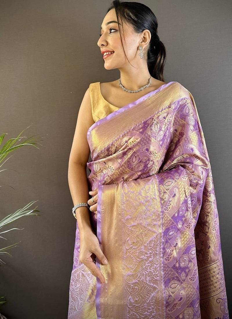 Levender & multicolor color zari weaving work kanjivaram tissue silk saree