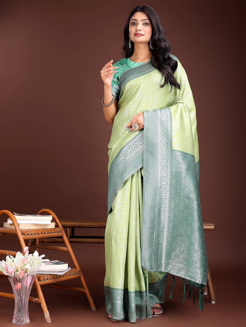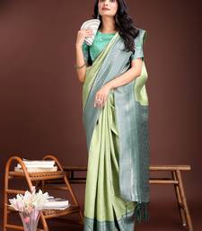 Light green color lichi art silk blend zari weaving saree with blouse