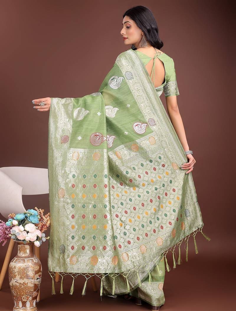 | Product Name | Light Green Color Linen Cotton Zari Weaving Saree With Blouse | |