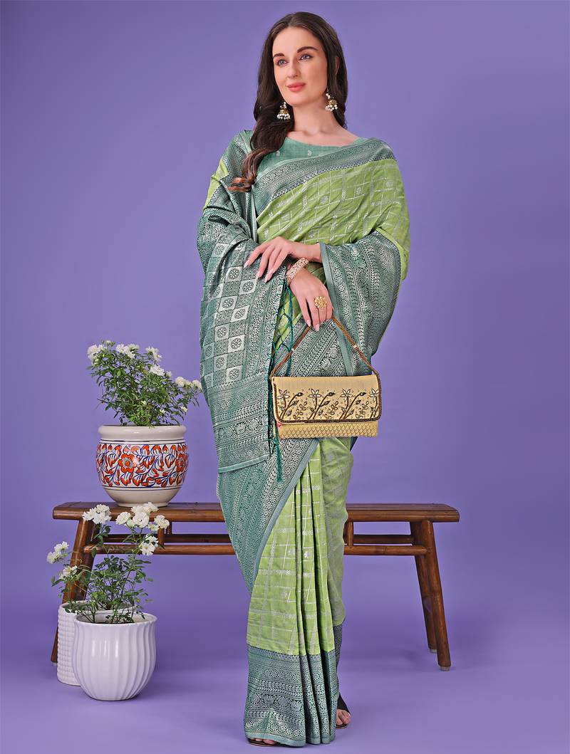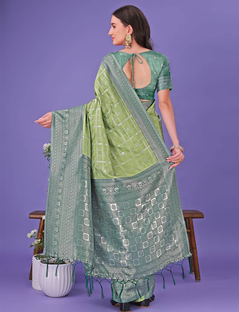 Product Name Light Green Color Woven Lichi Art Silk Blend Saree