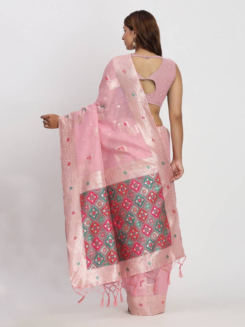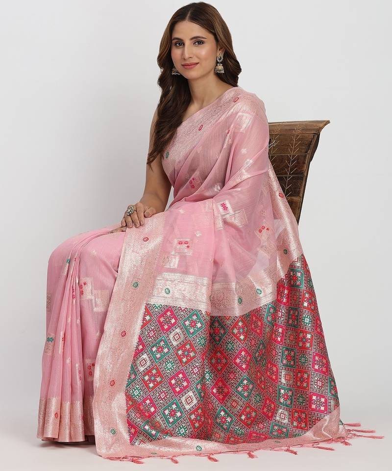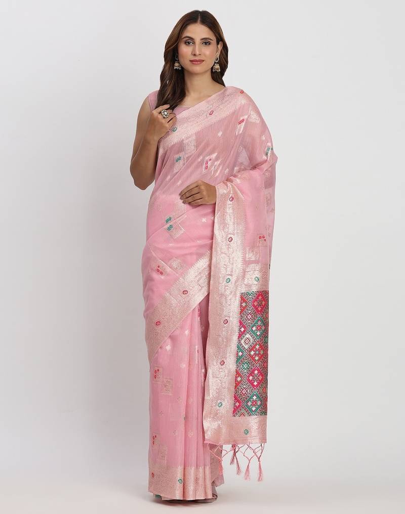 | Product Name | Light Pink Color Woven Work Linen Cotton Saree | |