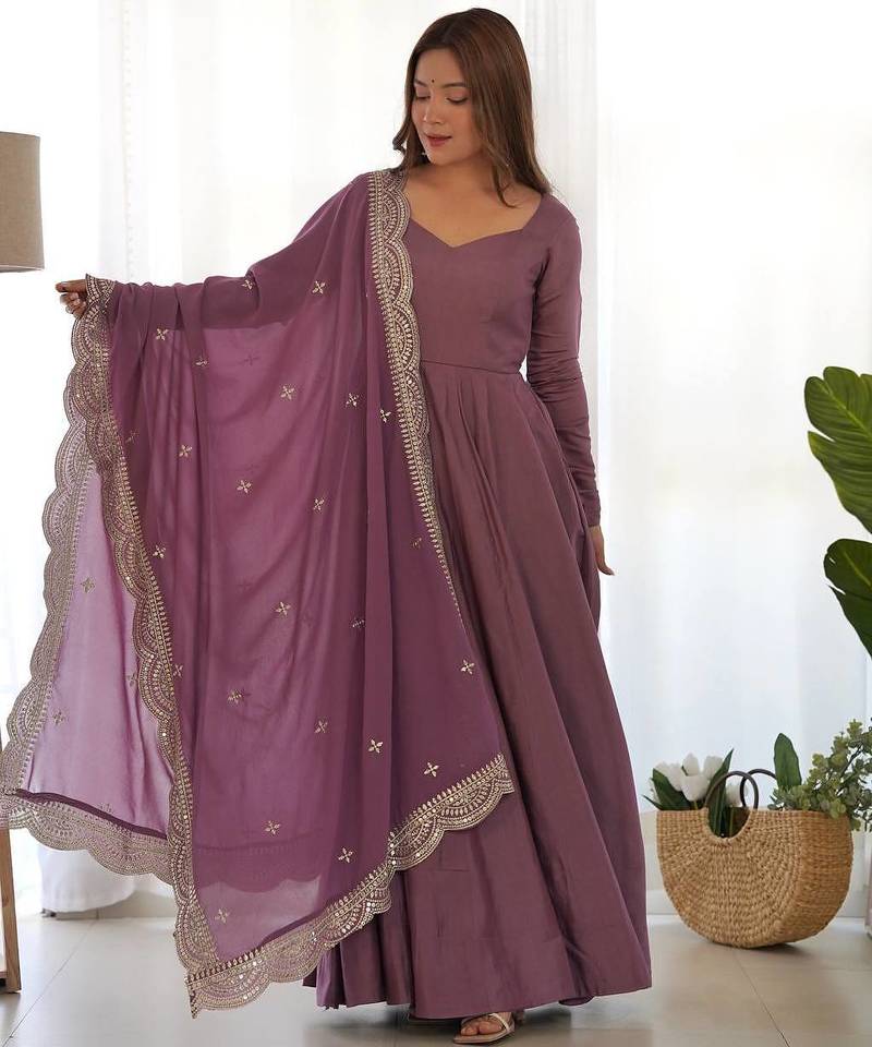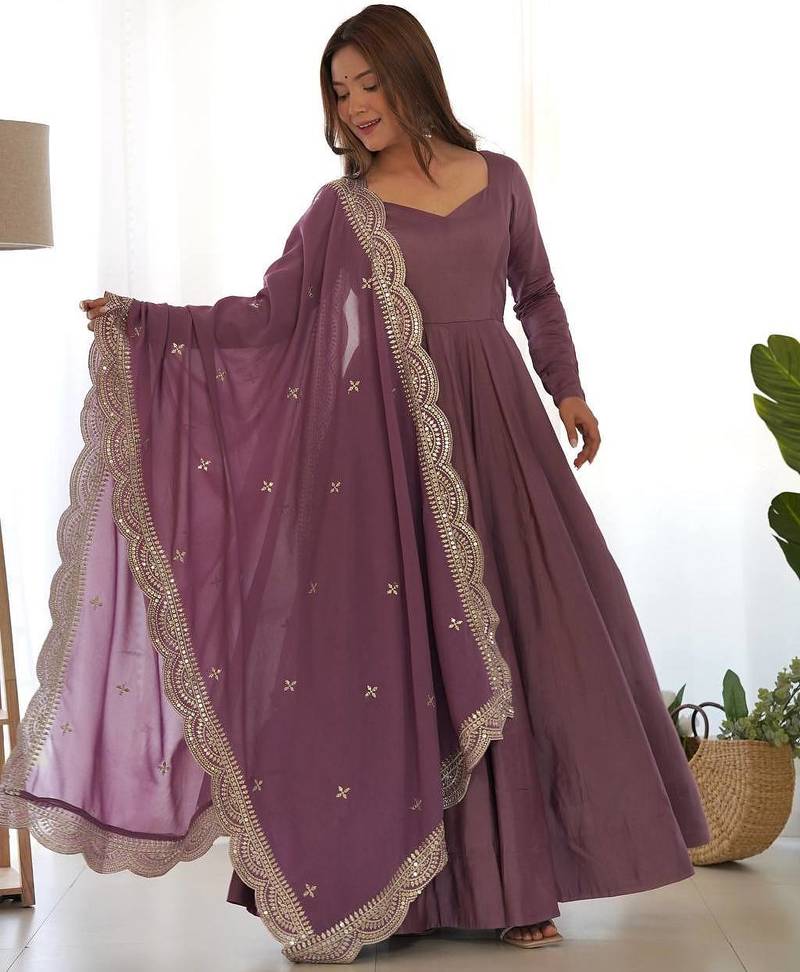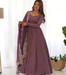 Product Name Mauve Color Solid Roman Silk Chanderi Stitched Anarkali Set