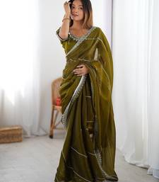 Mehandi green color silk blend thread sequince embroidered work saree with blouse
