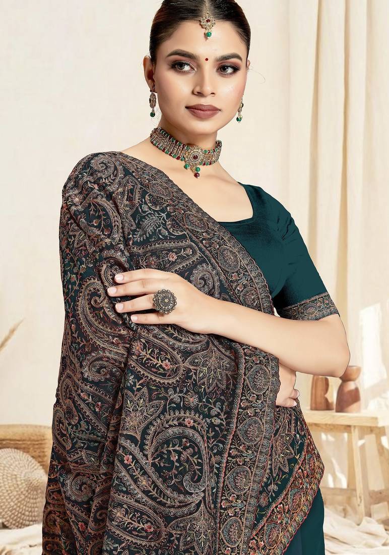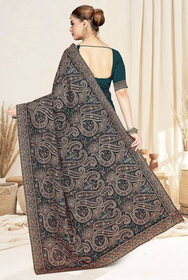 Product Name | Morpeach Color Resham Multi Kashmiri Embroidery Work Saree With Blouse | |