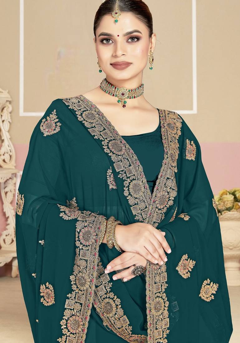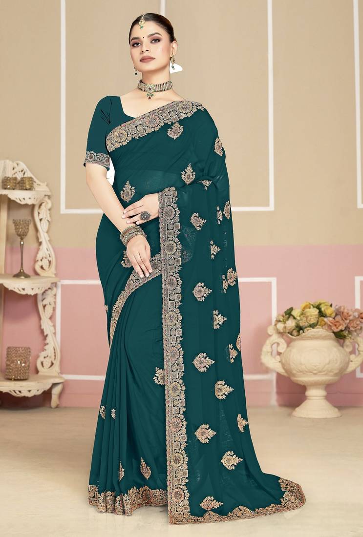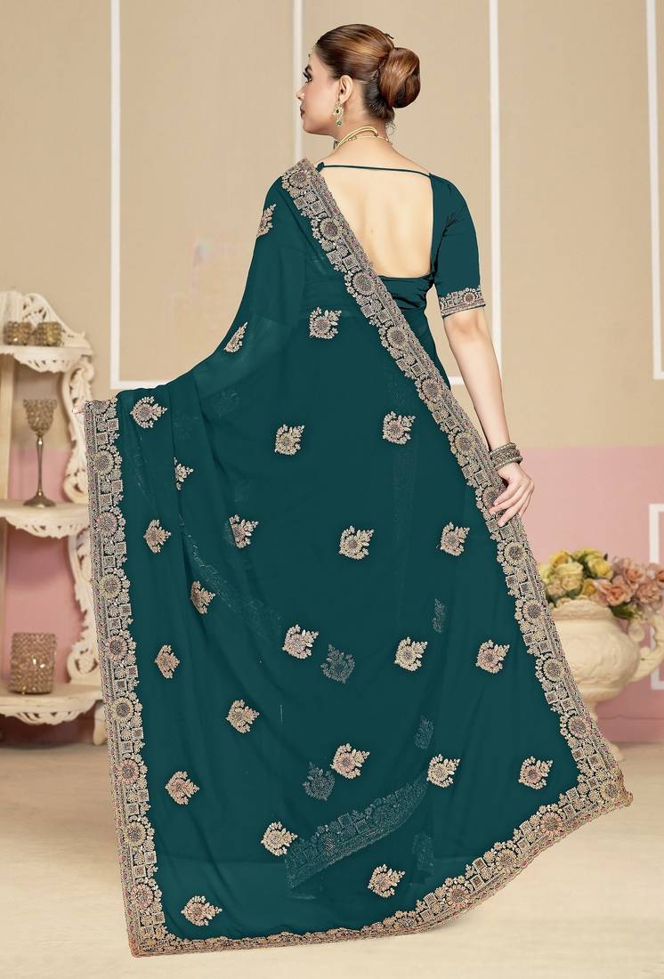 Morpeach color zirkon work & codding embroidered georgette saree with blouse