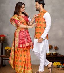 | Product Name | Musturd Color Jacquard Weaving Silk Couple Combo Men's Kurta & Pajama Koti & Women Saree Set | |