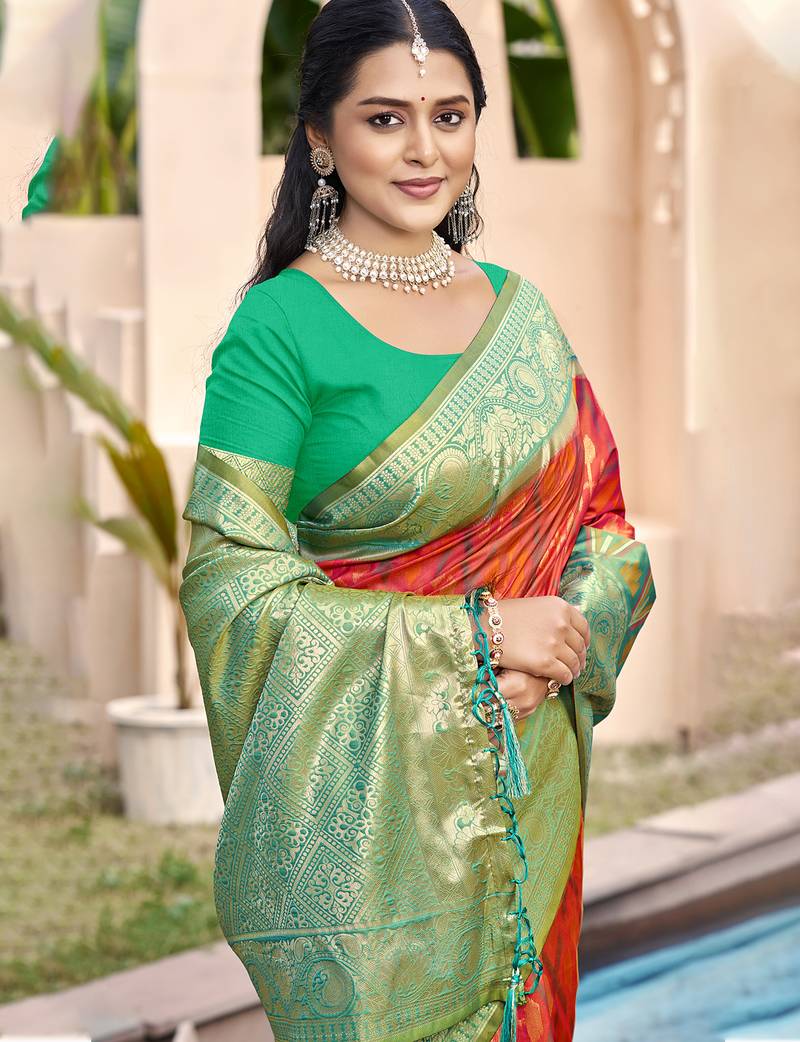 | • | Saree | : | Color- Orange / Fabric- Pochampally |