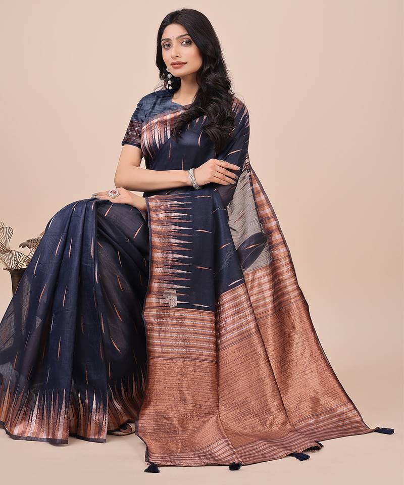 | Product Name | Navy Blue Color Solid Zari Woven Linen Cotton Saree | |