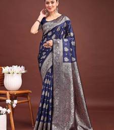 Navy blue color woven banarasi art silk saree with blouse