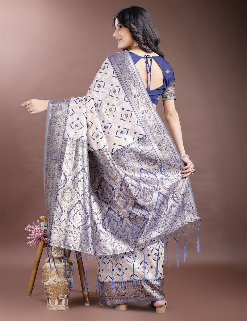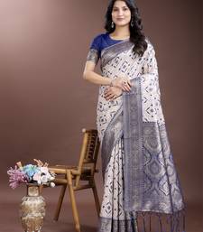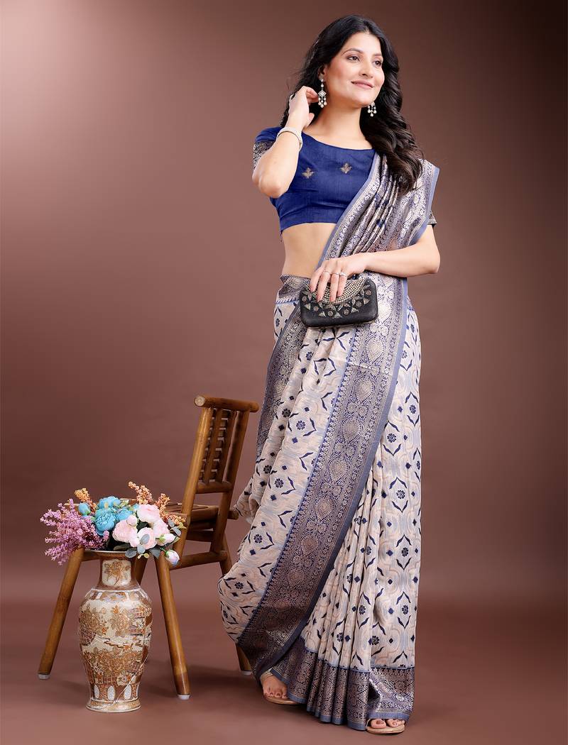 Product Name Navy Blue Color Woven Work Linen Cotton Saree