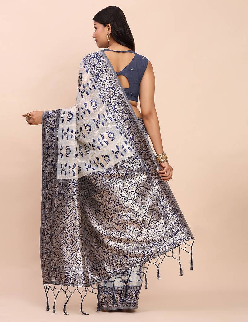 | Product Name | Navy Blue Color Woven Work Linen Cotton Saree | |