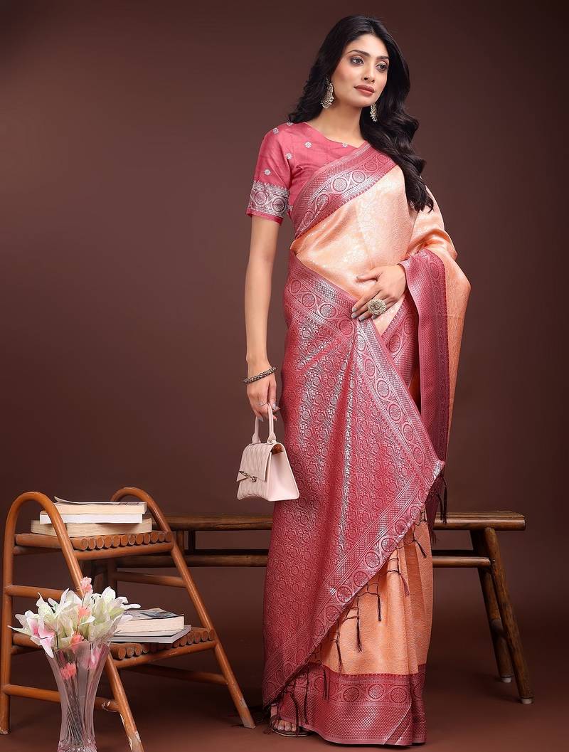 | Product Description | Litchi Silk Blend Zari Woven & Tassels Pallu Work Women's Beautiful Indian Party Wear Festival Saree With Un Stitched Blouse |