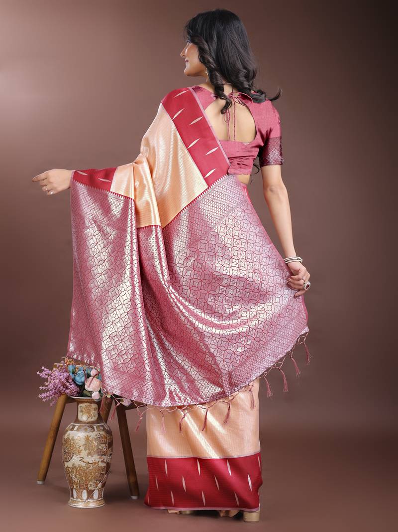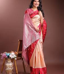 Orange color lichi art silk blend zari weaving saree with blouse